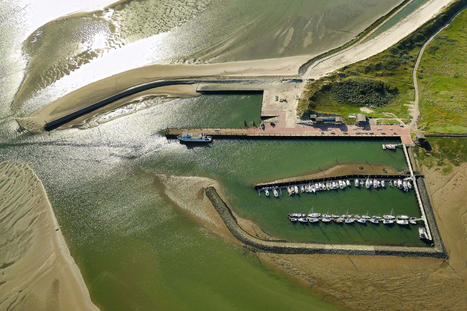 Die Fährverbindung wird von der Deutschen Bahn betrieben. Aufgrund der Abhängigkeit von Ebbe und Flut variieren die Schiffsabfahrzeiten täglich. Die Überfahrt dauert ca. 1 Stunde, danach fahren Sie ca. 20 Minuten mit der Inselbahn ins Zentrum.